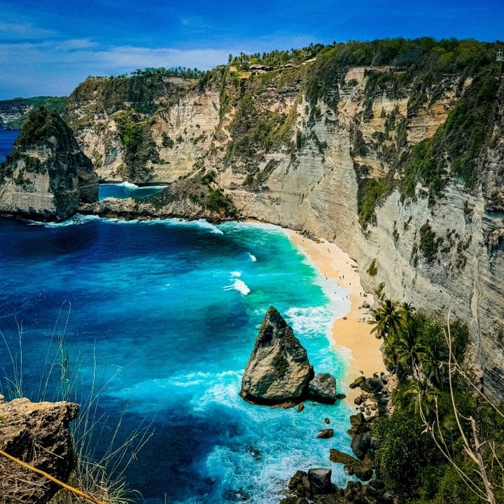 Keling King Hike - the most gorgeous hike you might ever experience. The descent is steep — more of an adventure than a simple hike. Bamboo railings line the narrow path, carved into the cliffside, guiding you down through dusty steps and limestone ledges. Each movement demands presence; your breath syncs with the rhythm of the waves echoing below. The air smells of salt and sun-baked earth, and as you pause to look out, the horizon stretches endlessly, reminding you just how small and sacred life can feel.